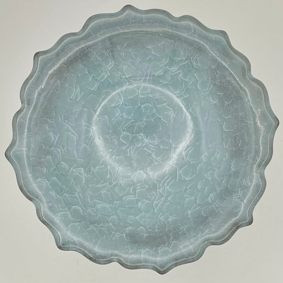 氷が割れたような貫入が特徴の青磁氷裂釉を使用しています。